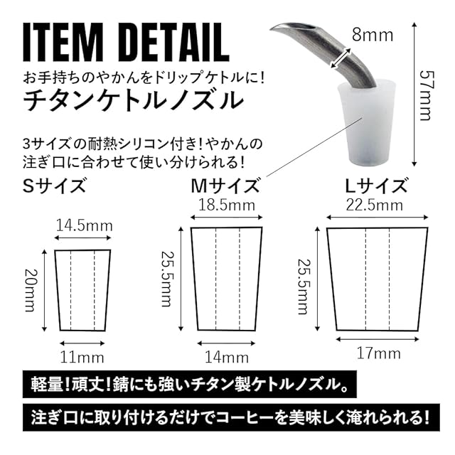 TITAN MANIA(チタンマニア) ケトルノズル チタン製 スキッター 超軽量 ケトル用 注ぎ口 やかん用ノズル 延長注ぎ口 急須 器具 ソロキャンプ アウトドア キャンプ用品