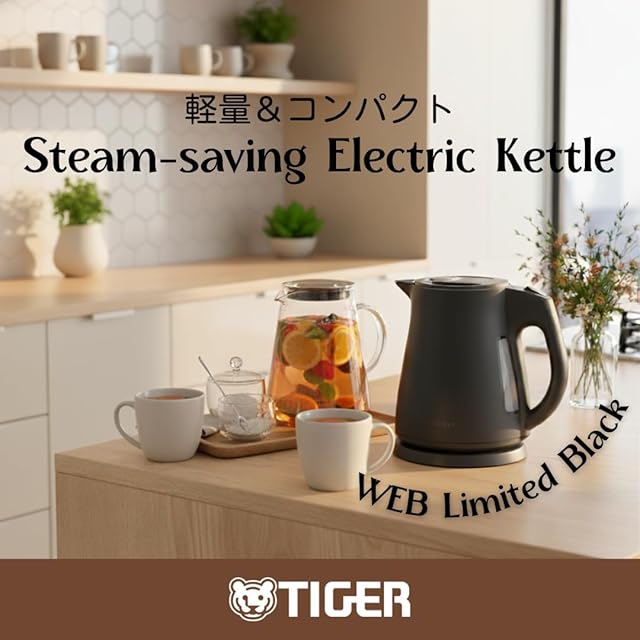 【WEB限定】タイガー魔法瓶(TIGER) 電気ケトル 蒸気セーブ 軽量 コンパクト 驚速 スゴ軽 湯沸かし 1.2L 転倒お湯漏れ防止 カラ炊き防止 マットブラック PCT-N120 K