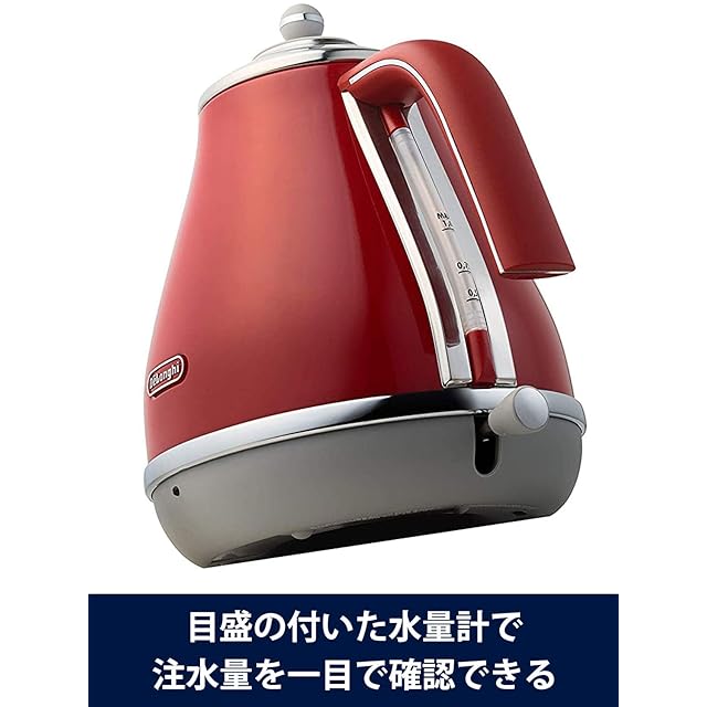 DeLonghi(デロンギ) De'Longhi電気ケトル アイコナ キャピタルズ KBOC1200J-R ステンレス 1.0L 見やすい水量計 異物混入防止フィルタ 空だき防止機能 簡単お手入れ [トーキョーレッド] ファミリー登録で3年
