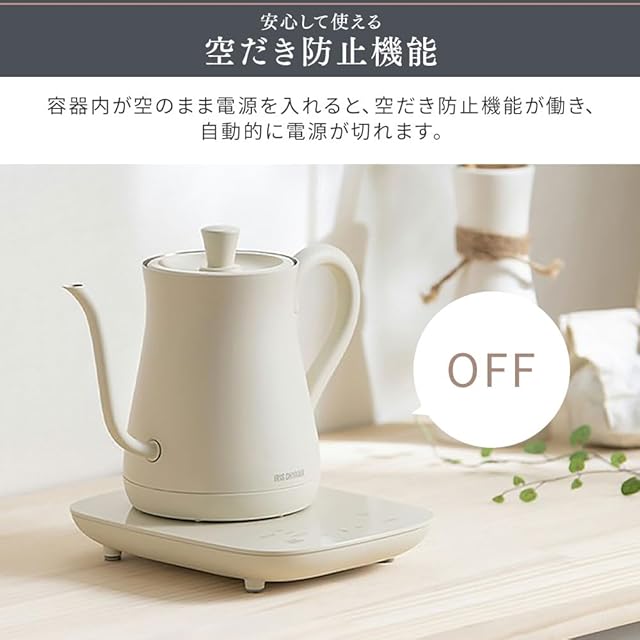 アイリスオーヤマ(IRIS OHYAMA) 電気ケトル 温度調節 ドリップケトル ケトル 600ml 10段階温度調節付 保温設定付 沸騰後自動電源OFF コーヒー 紅茶 緑茶 おしゃれ IKE-C601T-CW ホワイト
