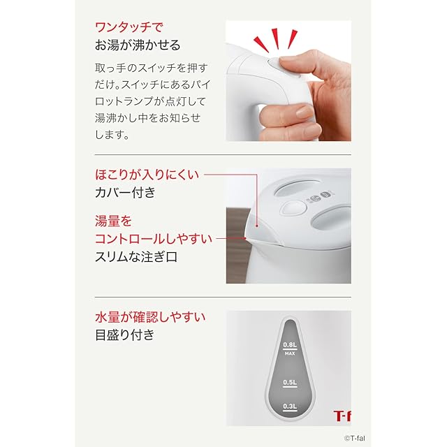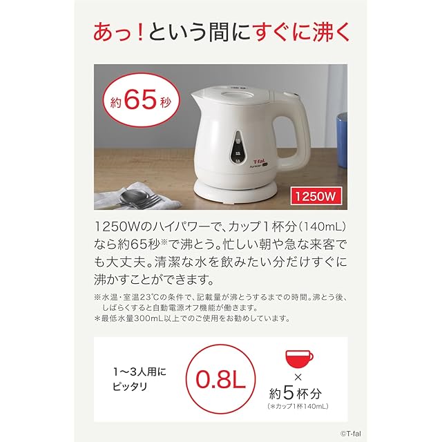 商品名:ティファール 電気ケトル 0.8L 転倒お湯もれロック 省スチーム設計 「アプレシア・プラス ロック ホワイト」 KO5401JP