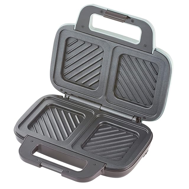 仕切りのない“ワイドプレート”でたくさんはさめる! 食パンの端がしっかりプレスされ、美しいフォトジェニックな断面のホットサンドの出来上がり! ハンドルのロックは2段階の厚み調節が可能で、ボリューム調節もお手のもの。 ON/OFFのスイッチ付きで、毎日使いやすいホットサンドメーカーです。