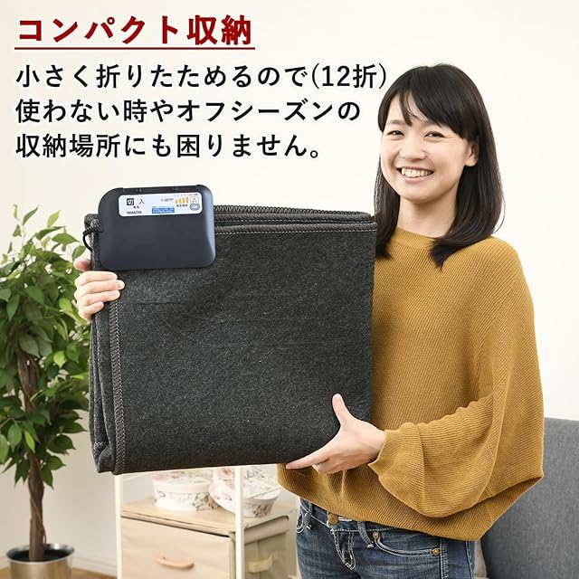 【商品仕様】▪本体サイズ:170×120cm/ラグサイズ ▪消費電力:300W ▪消費電力量(1時間あたり):目盛3=約150Wh/目盛5=200Wh ▪電気代目安(1時間あたり):目盛3=約4.7円/目盛5=約6.2円(1kW/h当り31円として計算) ▪表面温度(目安):目盛3=約36度/目盛5=45度 ▪期間:お買い上げ日より1年間(の範囲については、書をご確認ください。(一般家庭用以外(業務用など)に使用された場合の故障及び損傷などは対象外となります))