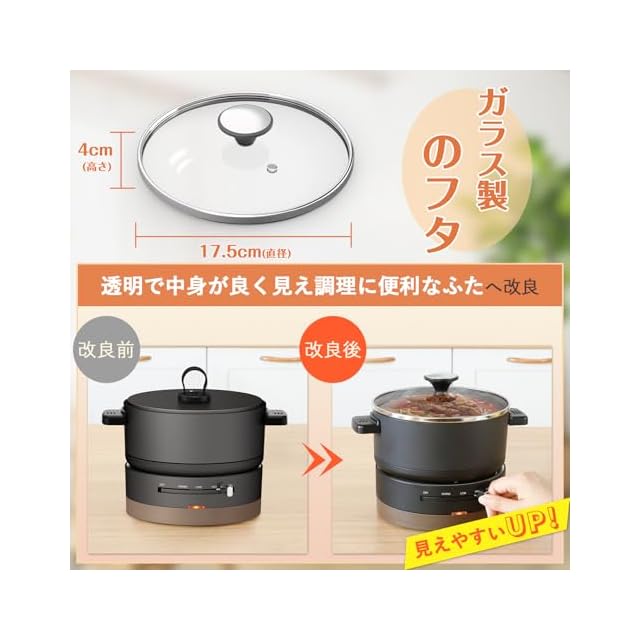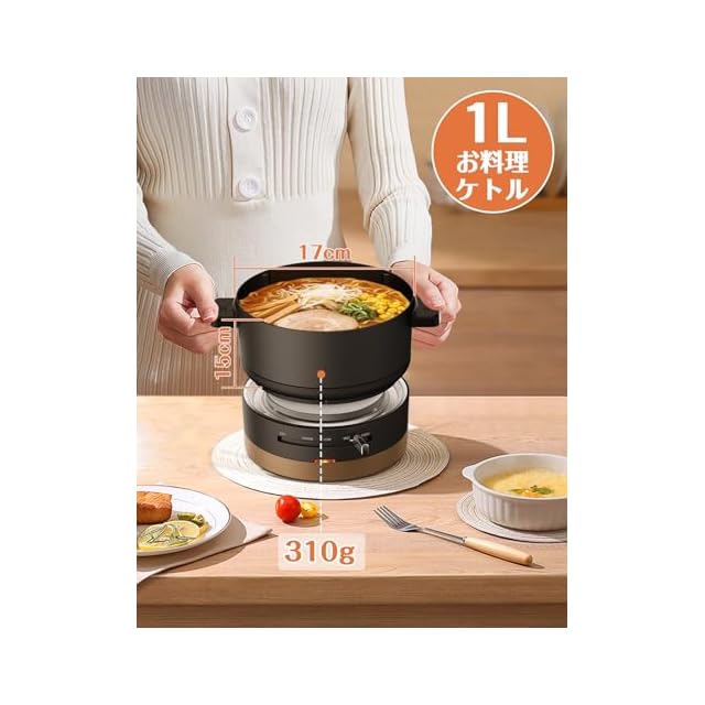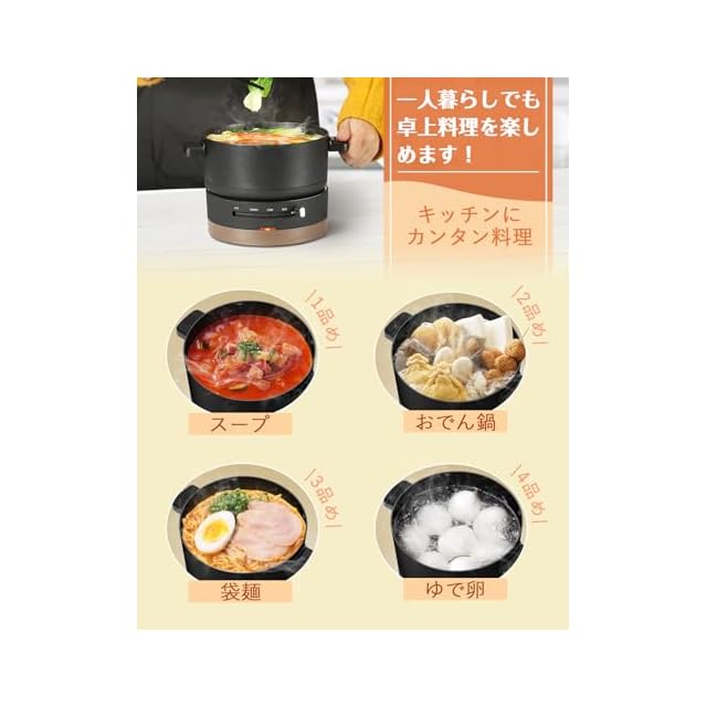 【一台多役】グリル鍋寸法:直径17cm×深さ8cm、お湯を沸かすのはもちろん、しゃぶしゃぶやラーメンまで楽しめる。煮る、焼く、炊くと様々な場面でも大活躍!1人鍋は一人暮らしの方に最適です。付属ホットプレート次第で、定番の鍋料理のほか、焼肉・パエリア・串カツなどにも対応できます。一人鍋は様々な場面でも大活躍!