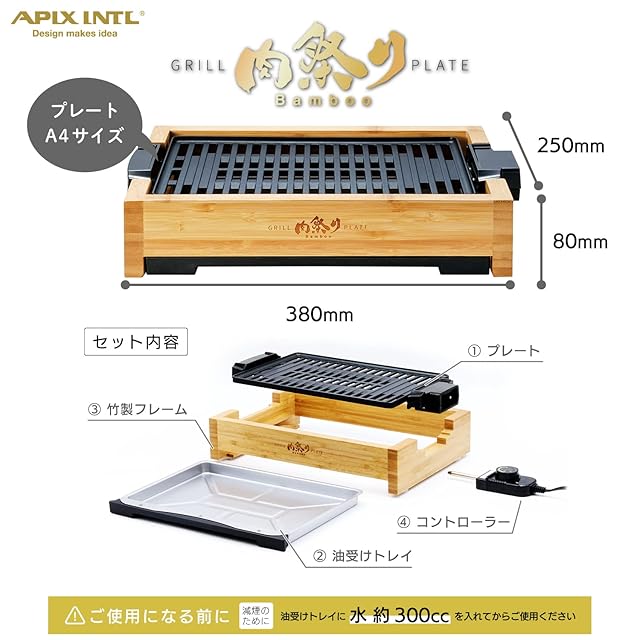【プラス30日延長カード付き】アピックス 肉祭り 竹 焼き肉プレート グリル プレート 煙が出にくい ホットプレート 焼肉グリル 無煙 小型 ヘルシー 焼肉ロースター 卓上