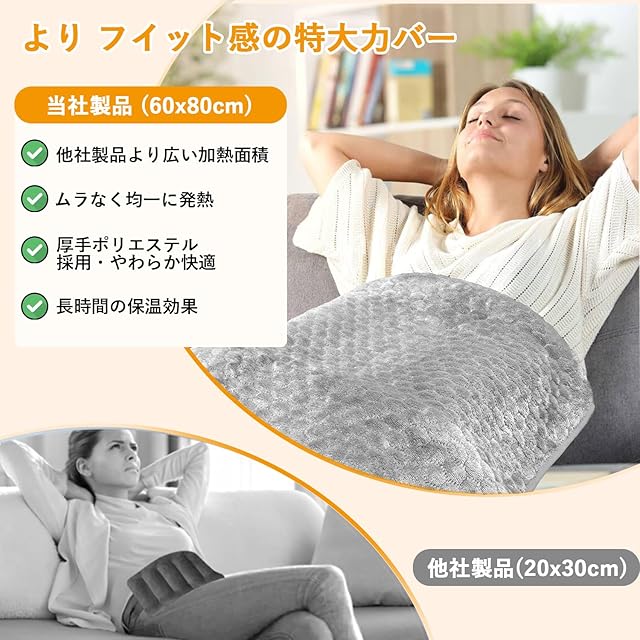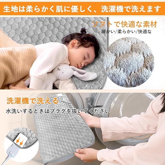 【100%ポリエステル素材・洗濯可能】電気パッドはポリエステル生地を使用し、柔らかく肌に優しいのが特徴です。通気性と保温性にも優れています。冷水での機械洗いが可能です(水温40℃を超えないでください)。 ※注意事項:コントローラーを取り外してから洗濯してください。完全に乾燥したことを確認してから使用してください。