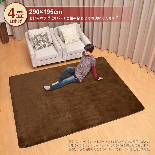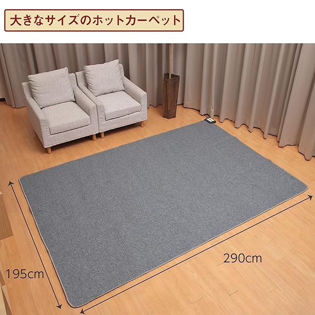 ライフジョイ ホットカーペット 4畳 電気カーペット 290×195cm ダニ退治機能 コンパクト収納 自動電源オフ8h 暖房面切替 グレー JPU401H