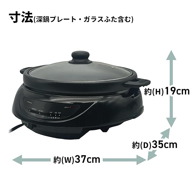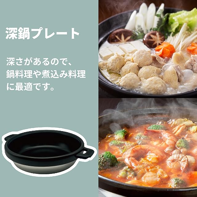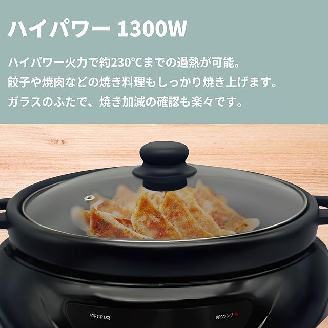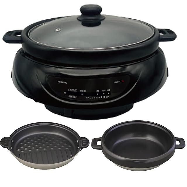 [東京Deco] 電気グリル鍋 着脱式 深鍋&グリル 3~4人用 鍋深さ7.5cm 1300W [深鍋・グリルプレート付き] 無段階温度調節 保温機能 フッ素加工 ガラスふた 鍋/煮込み/焼く/炒める 電気鍋 グリル鍋 ホットプレート 1枚 i001
