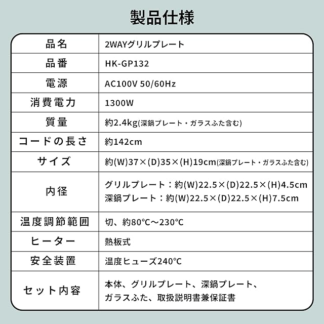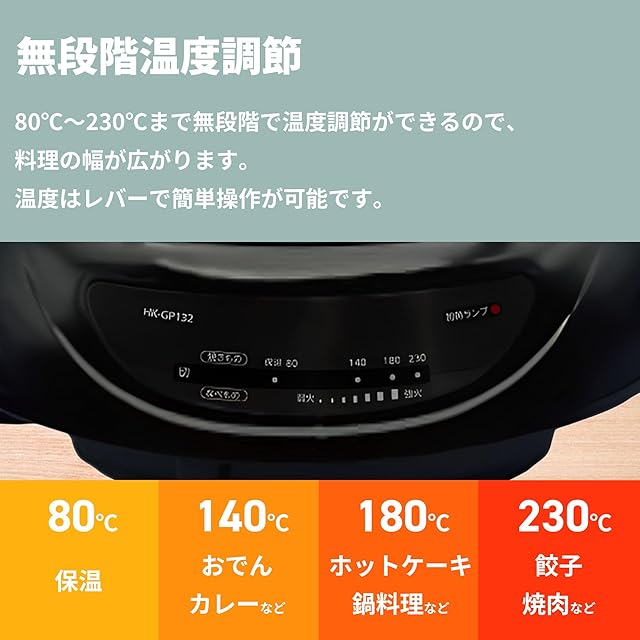 [ヒーター]熱板式 / [温度調整]切・約80℃~約230℃ / [安全装置]温度ヒューズ240℃