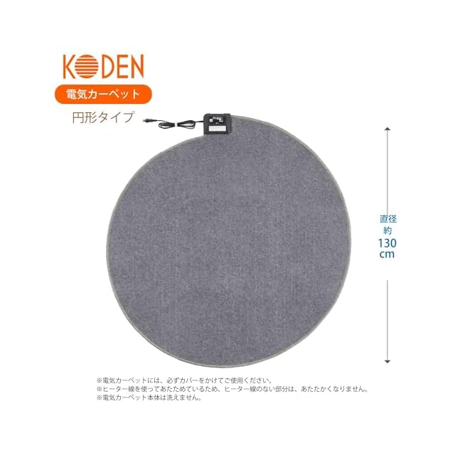 広電(KODEN) 電気カーペット ホットカーペット 本体 円形 直径130cm スライド温度調節 ダニクリーン VWC130H