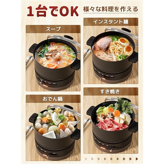 【卓上に置いて使いやすい一人鍋】1.0L容量の深鍋が外せるからそのまま皿として食卓へ。一人暮らしに便利な1〜2人用。小型で低電力なので、アウトドアポットとして使用でき、車中泊、キャンプ、旅行にでも、温かくてヘルシーな食べ物をすることもできます。