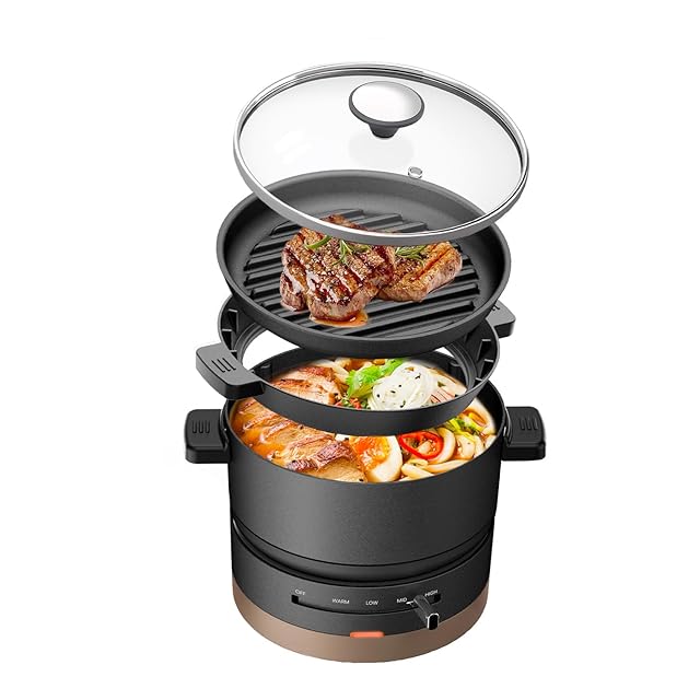 HAGOOGI ホットプレート 電気鍋 2枚タイプ 600W 1.0L 電気 一人用 4段階温度調節 波形プレート ガラス蓋 丸洗い可能 焼肉 一人暮らし用 1人 2人 小型 深鍋 焼肉プレート 車中泊/キャンプ/旅行