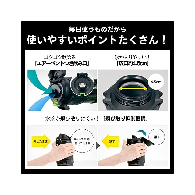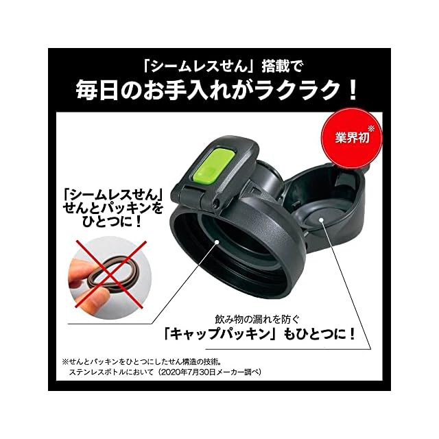 象印マホービン(ZOJIRUSHI) 水筒 シームレスせん スポーツタイプ 大容量 1.5L 直飲み ステンレスクールボトル ライムブラック せんとパッキン一体化 お手入れ簡単 洗う点数2点のみ SD-HA15-BG