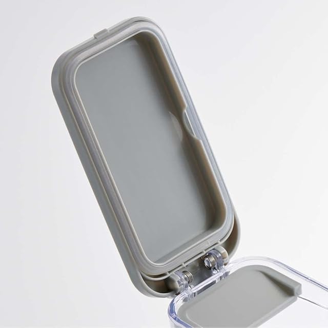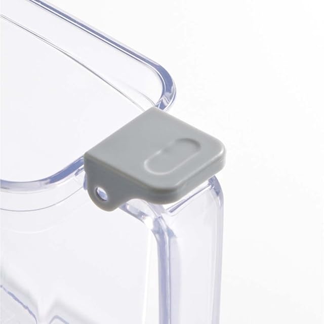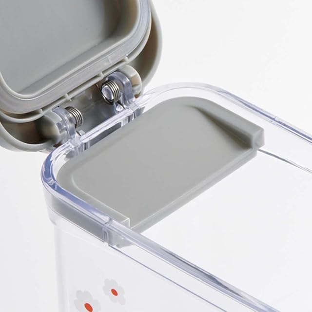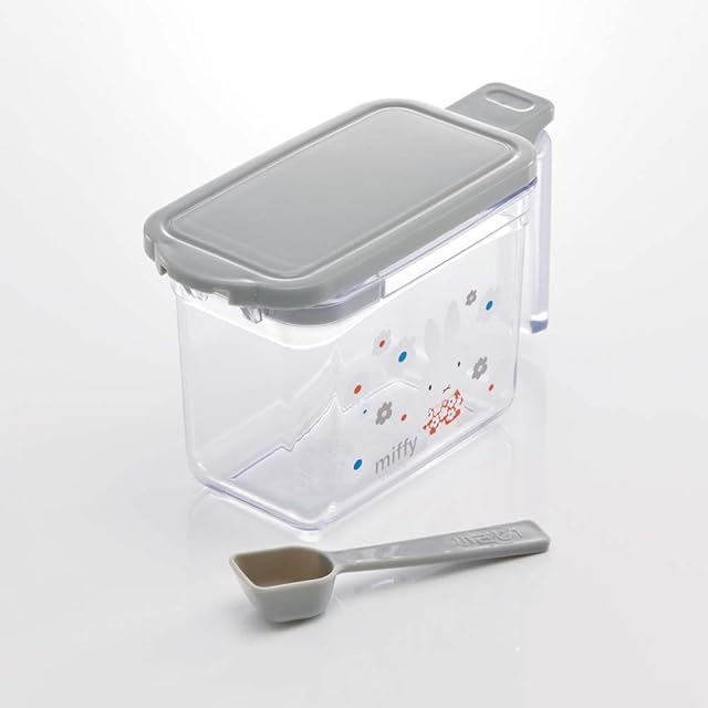 素材・材質:ケース=AS樹脂(耐熱温度80度)、フタ・ボタン・すりきりプレート・軽量スプーン=ポリプロピレン(耐熱温度140度)、パッキン=シリコーンゴム(耐熱温度140度)、スプリング=ステンレス鋼