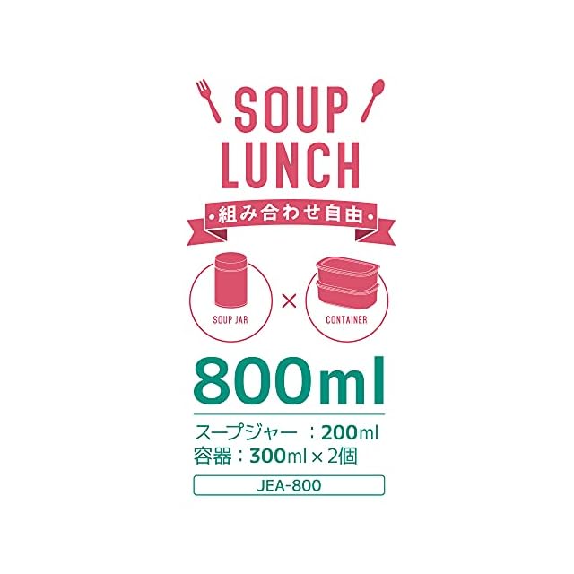 サイズ(約):幅20.5×奥行8.5×高さ10.5cm、本体重量(約):400g、容量:スープジャー/200ml・おかず容器/300ml×2個