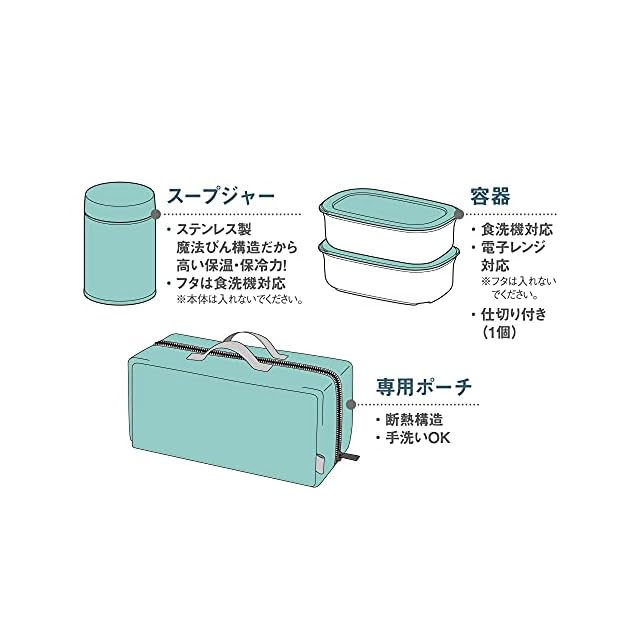 color:ミント pattern:単品 size:スープジャー:200ml/おかず容器:300ml×2個: