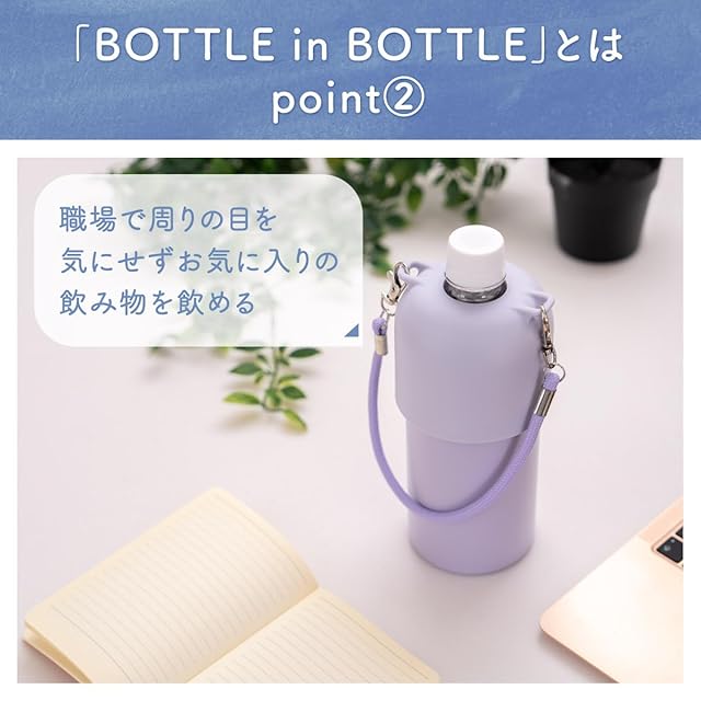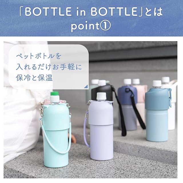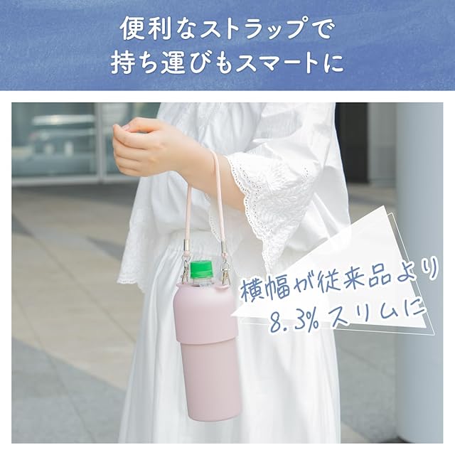 500mlから650mlサイズのペットボトルに対応。便利なストラップ付き