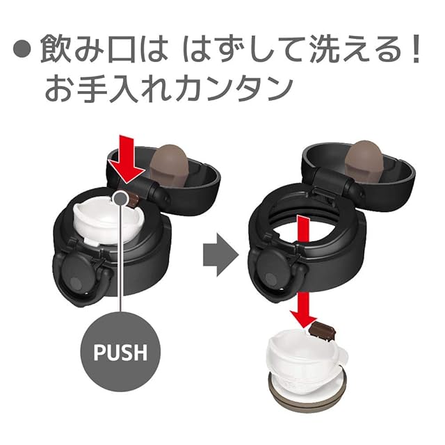 素材・材質:内びん/ステンレス鋼、胴部/ステンレス鋼(アクリル樹脂塗装)、フタカバー/ABS樹脂、フタ・せん本体/ポリプロピレン、飲み口/ポリプロピレン、フタパッキン/シリコーンゴム、せんパッキン/シリコーンゴム