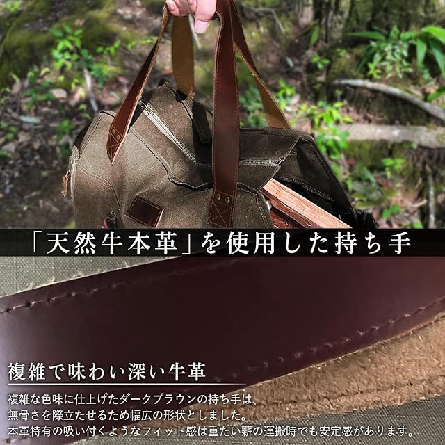ZUKK 薪バッグ キャンプ 焚き火 ギアバッグ 本革 極厚帆布 容量50L 高耐久 パラフィン 自立式 撥水 ログキャリー 薪スタンド (コヨーテブラウン×ダークブラウン)
