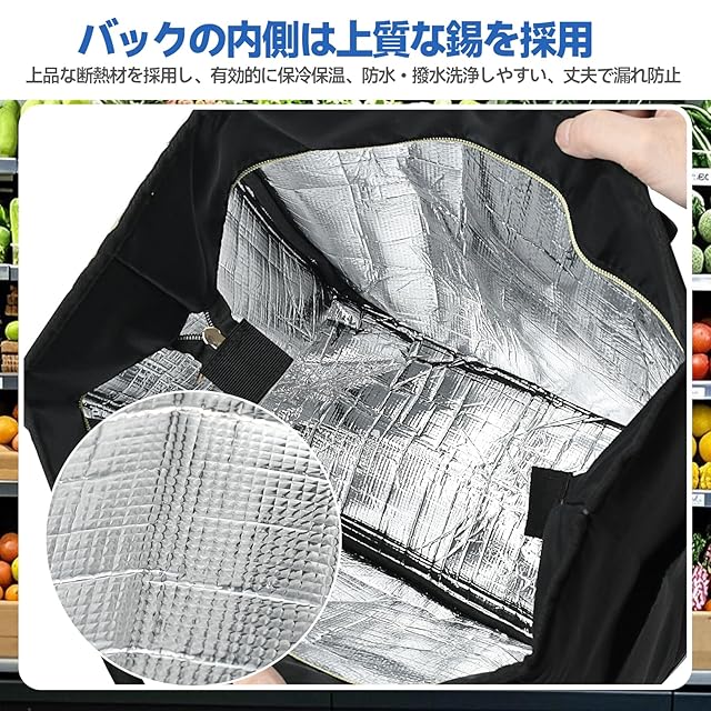 【高品質素材】保冷機能付き ショッピングカートの表面素材は高品質のオックスフォード布+防水コーティングで、優れた防水効果があります。 雨、雪、の日でも中の商品が湿る心配はありません。