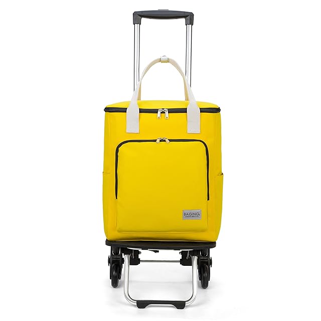 [BAGING バギング]日本製YKKファスナー 階段も引いて上がれる 5段階調整可能 保温保冷 ショッピングキャリー 6輪静音キャスター 折りたたみ 買い物カート 909 (イエロー)