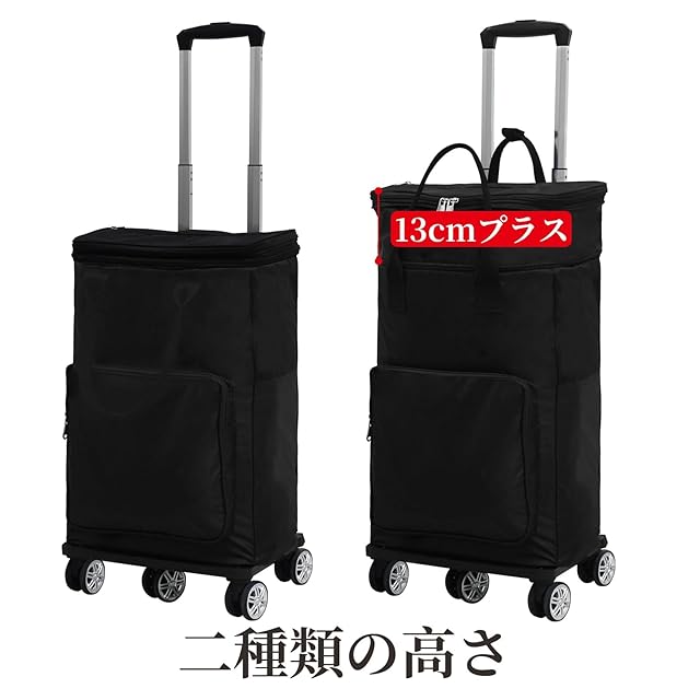 【50L超大容量&強力な耐荷重性】ショッピングキャリー50Lの大容量で、最大耐荷重45KGまで運可能。ショッピングカートは容量を拡大し、13 cmの貯蔵スペースを増加することができる。ショッピングバッグサイズ:縦34.5 cm*横21 cm*高さ61.5 cm、バッグの周りには4つのポケットがあり、傘、鍵、携帯電話、財布など多くのものを入れることができます。他の製品とは異なり、私たちは単独でレバーの側面にフックを設計し、ショッピングバッグ、傘などのものを掛けることができ、両手を自由にすることができます。