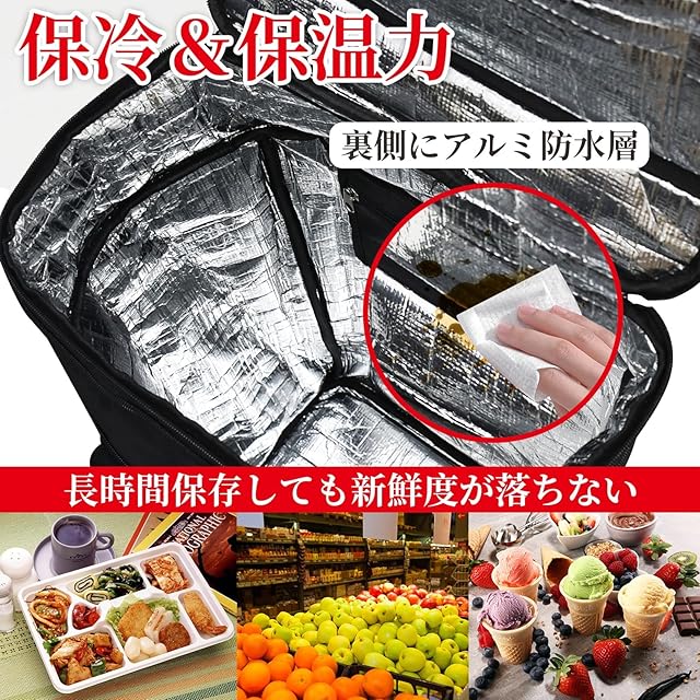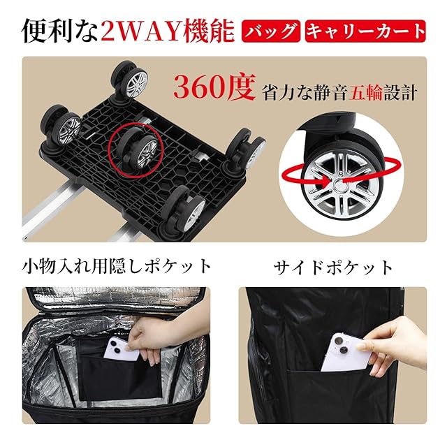 【高品質素材】バッグ内部全体に冷熱保温機能が付いています、ショッピングカートの表面素材は高品質のオックスフォード布+防水コーティングで、厚手のライナーです、優れた防水効果があります。 雨、雪、の日でも中の商品が湿る心配はありません。バッグとトローリーを別々に使える2WAY仕様の使い方ができ、カートはカートとしても独立したハンドバッグとしても使えます。