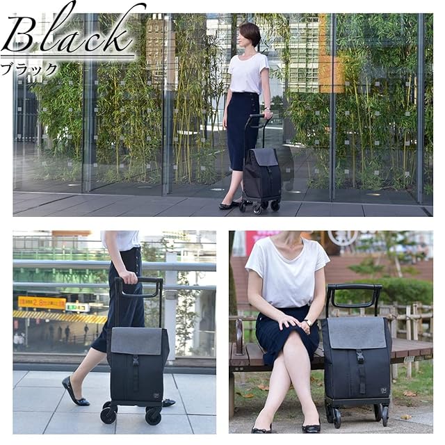 GRANMARIE[グランマリー] ショッピングカート ブレーキ付き 4輪 横押し 後ろ引き 2way 保冷 保温 買い物 保冷バッグ 保冷GM-124ST ブラック