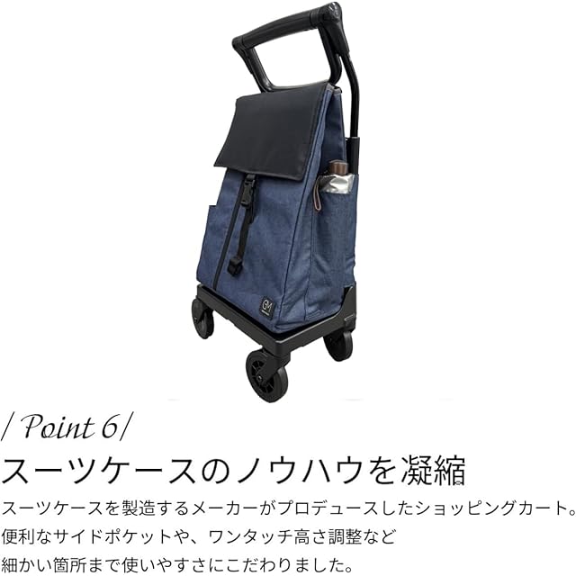 【もっと便利で安全なお買い物を】大容量で21Lまで収納可能なメインルームは荷物の出し入れがしやすい前方ファスナー付き。大きく開く間口は、長さのある物や角ばった物でも簡単に収納可能で、取り出しも容易です。さらに店内のカートへ取付可能なフック付きで、お買い物の邪魔にならず、移動もスムーズに行えます。また、カートを引くとキャスターに自動でロックがかかり、まっすぐ安定して走行することができるので、 荷物を運ぶ際にも安心です。
