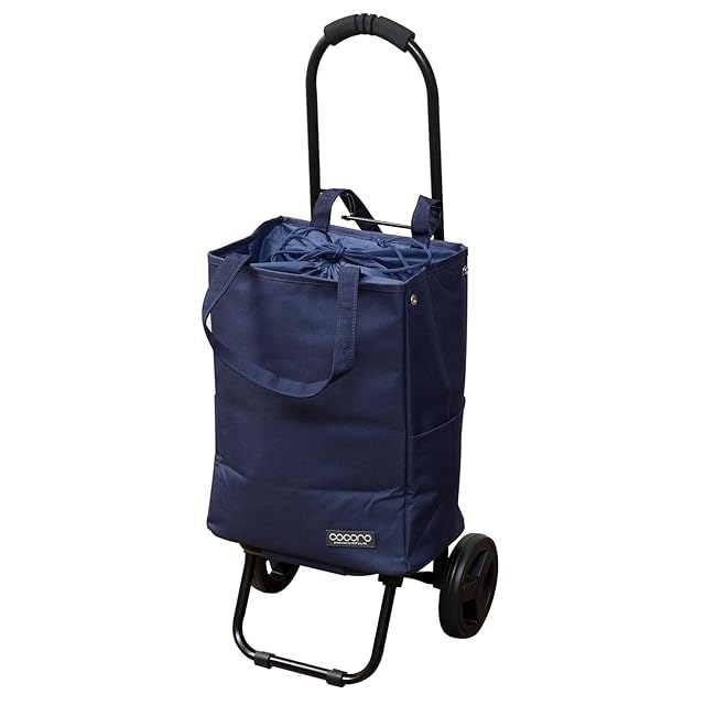 レップ(REP) ショッピングカート おしゃれ 折りたたみ 【オリジナル仕様:外ポケット2か所/両ひも巾着/内側ポケット/新タイヤ/通し装着タイプ】 カートにかけられる 保冷 保温 高齢者 買い物カート COCORO(コ・コロ) トート ネイビー NV 530047