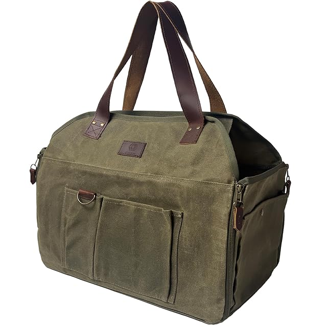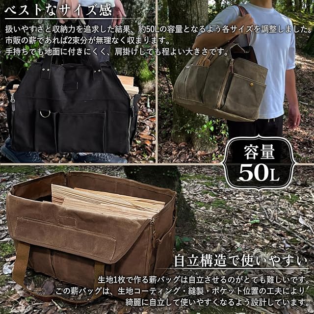 ZUKK 薪バッグ キャンプ 焚き火 ギアバッグ 本革 極厚帆布 容量50L 高耐久 パラフィン 自立式 撥水 ログキャリー 薪スタンド (オリーブブラウン×ダークブラウン)