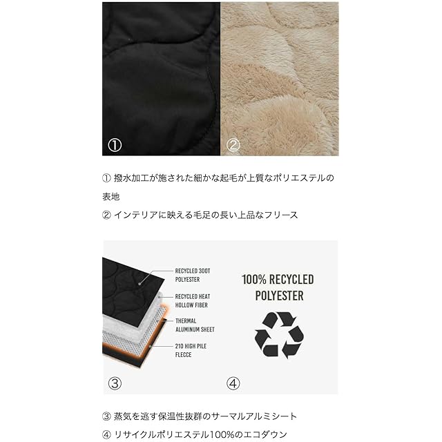 素材:表地(フリースを除く) リサイクルポリエステル / 中綿 リサイクルポリエステル