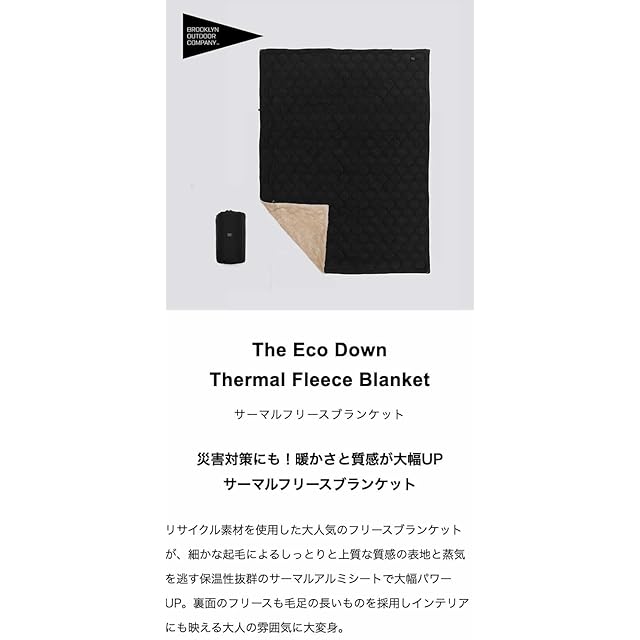BROOKLYN OUTDOOR COMPANY (BOC) ブルックリンアウトドアカンパニー サーマルフリースブランケット ジップアップ 寝袋型 NY発 キャンプ アウトドア 防寒 撥水加工 災害対策 (ブラック) (H180 x W130cm / ブラック)