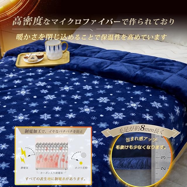 【真冬に絶対】電気代が上昇する今、暖かさ抜群の毛布は冬の快適な必需品です。弊社のこの毛布布団は、アルミシートとエアロゲルシートを使い二重の断熱性に加え、蓄熱綿と吸湿発熱綿を組み合わせた二重の保温性を持っています。また、中綿には日本の有名な帝人の抗菌防臭繊維が含まれ、さらに表面生地には光触媒加工を施したフランネルを使用しており、温感フランネルを使用し、乾燥肌を防ぎながら、肌の修復をサポートし、静電気も抑えるよう工夫しています。
