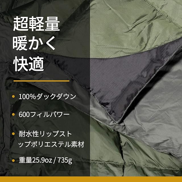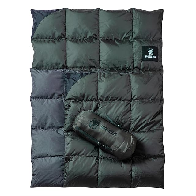 OneTigris ダウンブランケット 195cmⅹ135cm マルチブランケット 防寒 キャンプ アウトドア ひざ掛け 掛け布団 車中泊 超軽量 テント用キルト 柔らかい 暖かい コンパクト 収納袋付き (緑)