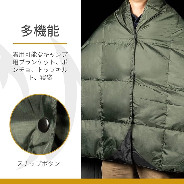 【機能性】アウトドア用防寒マント、寝袋、キャンプ布団としての多用途キャンプ用品です、朝晩冷え込む春.夏.秋.冬キャンプに1枚持っておくと便利です。