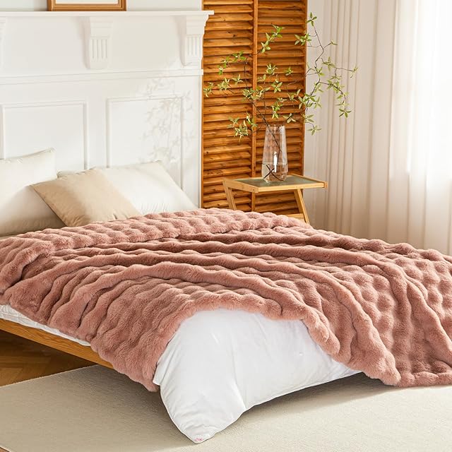 Haguko 毛布 ふわとろ ダブル ブランケット モコモコ ふわふわ おしゃれ 暖かい ぽこぽこ 可愛い もふもふ 洗える (180x200,ダストローズ)