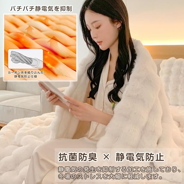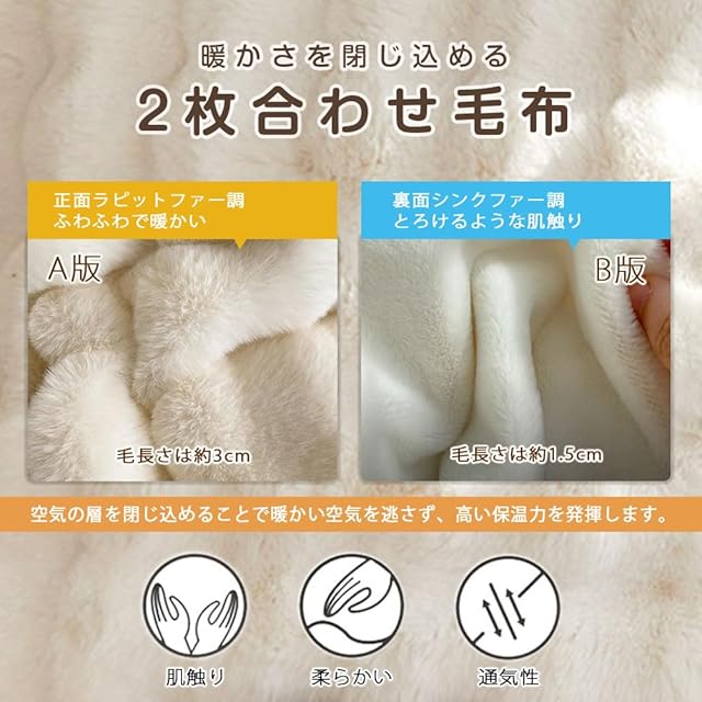 ✿【贅沢なふわふわ触感】贅沢なふわふわファータッチは、美しいだけでなく肌触りも抜群です。両面は同じファーでどちらが体に当たってもふんわりとしたフリースになっています。