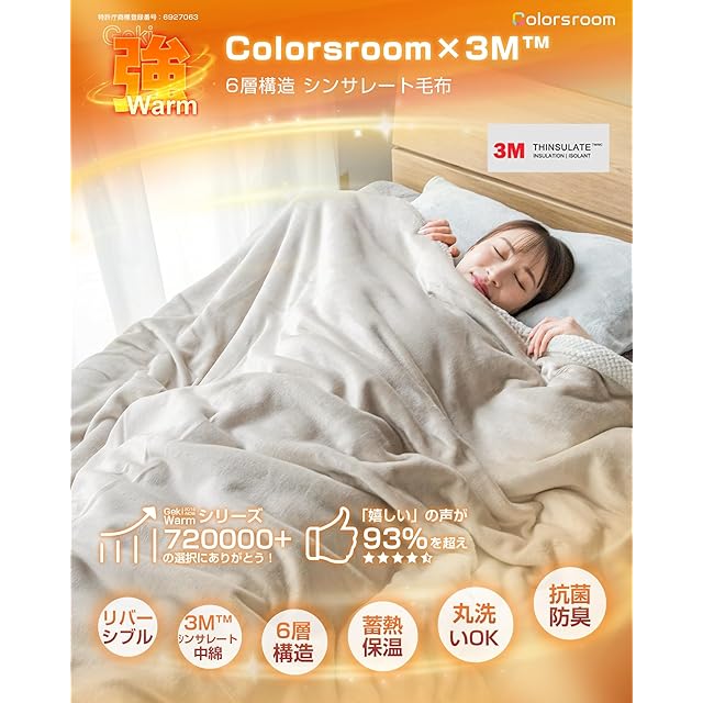 Colorsroom シンサレート 毛布 シングル 六層構造 【日本企業開発・3Mシンサレート100%使用】 厚手 冬用 SUPER PRIME 3779 蓄熱保温 両面使える リバーシブル 2枚合わせ フランネル 超極細繊維 吸湿発熱 毛抜けない 静電気99%抑制 洗える 1.65KG 140×200cm グレージュ