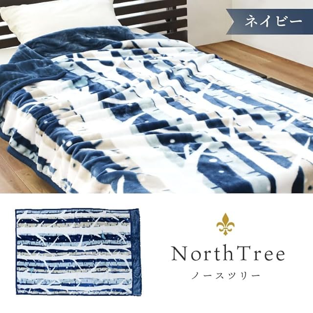 西川 毛布 冬用 シングル 2枚合わせ 【3億円売れた】 ≪2枚セット≫ 掛け毛布 140×200cm 洗える ノースツリー柄 ネイビー マイヤー 衿付き 秋 冬 春 あったか 約1.8kg かわいい おしゃれ ブランケット 節電