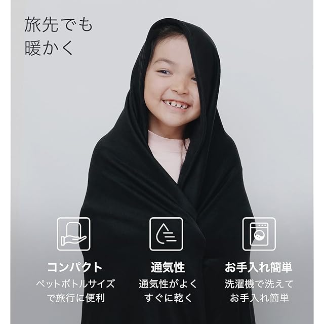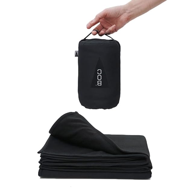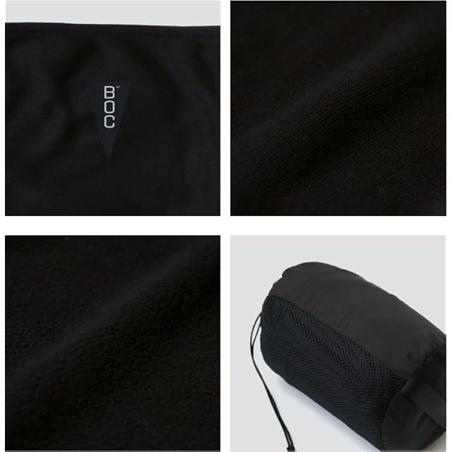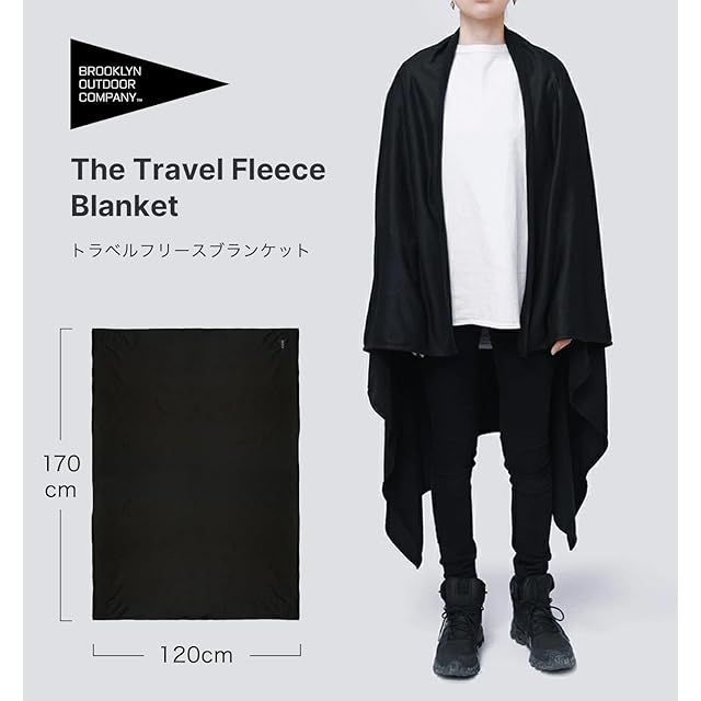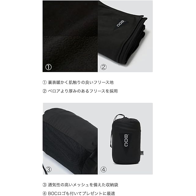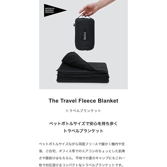 BOC 170 x 120 cm(BROOKLYN OUTDOOR COMPANY ブルックリンアウトドアカンパニー)防災 機内 旅行用 トラベル ブランケット 収納袋付属 コンパクト アウトドア キャンプ バックパッキング フリース ベロア NY発 (フリース/ブラック)