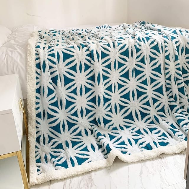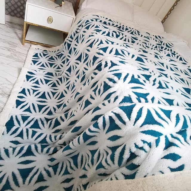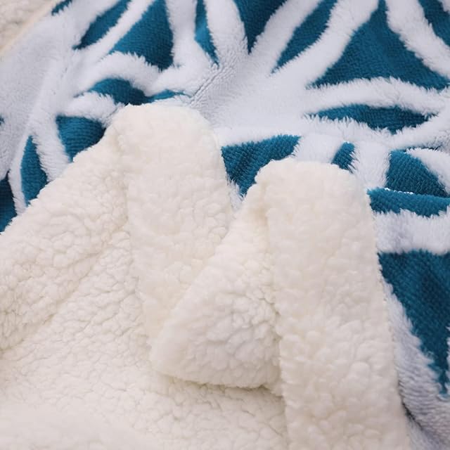 sledar(スレダー) 毛布 掛け毛布 クォーター ひざ掛け 羽織れる 発熱二枚合わせ パイル シープ調 ふわふわ 丸洗いOK 抗菌防臭 防ダニ加工 北欧風 プレゼント 秋冬 (70x100cm,ティール)