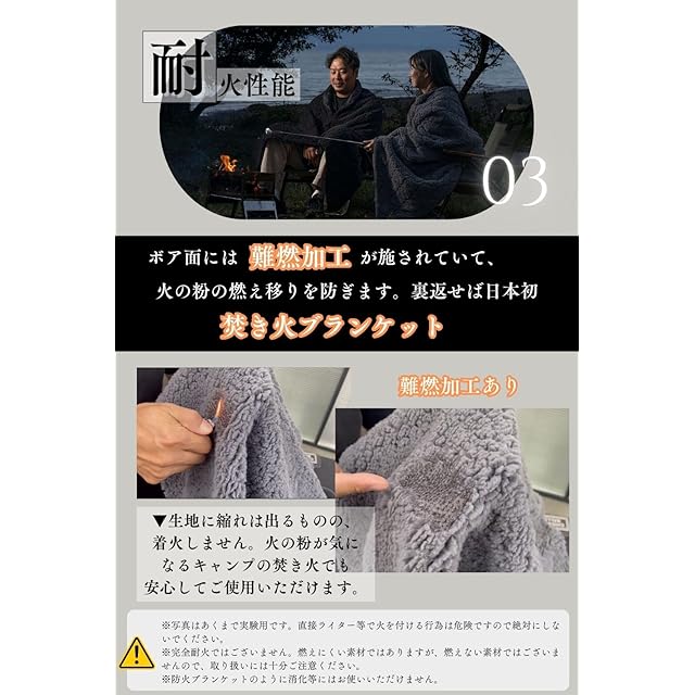 【アウトドアで使用可能な高性能ブランケット】冬の車中泊やキャンプ、スポーツ観戦等の屋外イベントや災害時でも使用可能な耐寒、耐風、耐火性能に優れたブランケットです。
