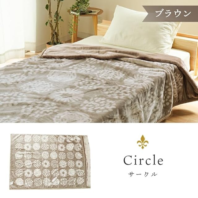 西川 毛布 冬用 シングル 2枚合わせ 【3億円売れた】 ≪2枚セット≫ 掛け毛布 140×200cm 洗える サークル柄 ブラウン マイヤー 衿付き 秋 冬 春 あったか 約1.8kg かわいい おしゃれ ブランケット 節電
