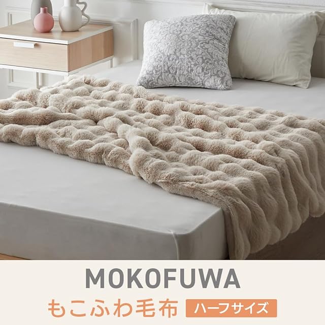 アイリスプラザ もこふわ毛布 ブランケット ずっと触れていたいタッチ感が癖になる2枚合わせのひざ掛け毛布 安心の低ホルムアルデヒド 静電気防止加工 ハーフサイズ ベージュ