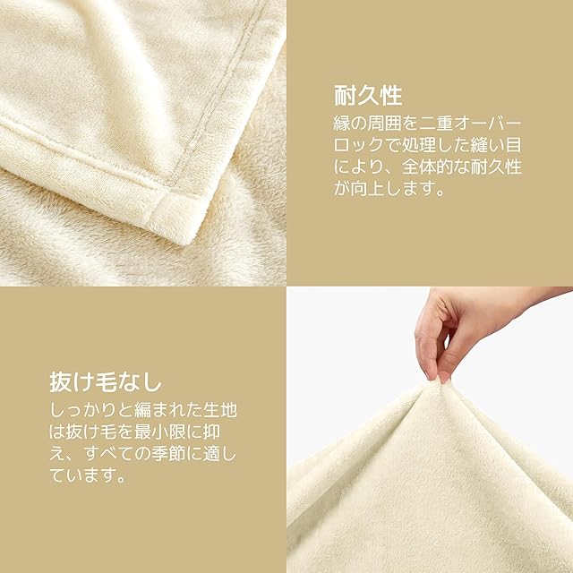 【毛布仕様】素材:ポリエステル100%。サイズ:ダブル・180*200cm 重量:1.2kg カラー:アイボリー。