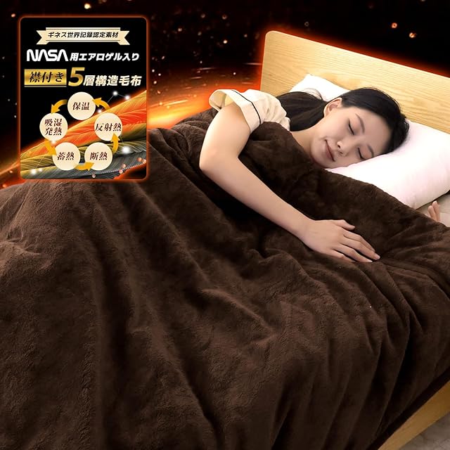 【極暖ループ設計:5層構造&襟付き】この毛布は5層構造のデザインです。①層目:高密度の<静電気防止・光触媒制菌加工>フランネル表地、②層目:NASAの宇宙服にも使用される<超断熱>エアロゲルシート、③層目:柔らかい<防音・断熱>アルミシート、④層目:<超吸湿発熱>レーヨン&HEATSTARsolar<蓄熱保温>中綿、⑤層目:高密度で静電気防止と光触媒制菌加工のフランネル裏地です。この5層でしっかり保温のループを生成し、さらに、冬用毛布は襟付き仕様で、首と肩の接触部分に柔らかくて二重構造の衿を付けて、冷気の侵入を防ぎ、さすがに上品な暖かくふわふわ安眠ブランケットです。