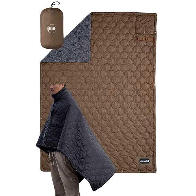 Chill Camping(チルキャンピング) キャンプ用 ブランケット 防寒 アウトドア キャンプ リバーシブル 難燃 エコダウン 車中泊 キャンプ 防災 旅行 コンパクト (ウォールナット 茶色, Lサイズ)