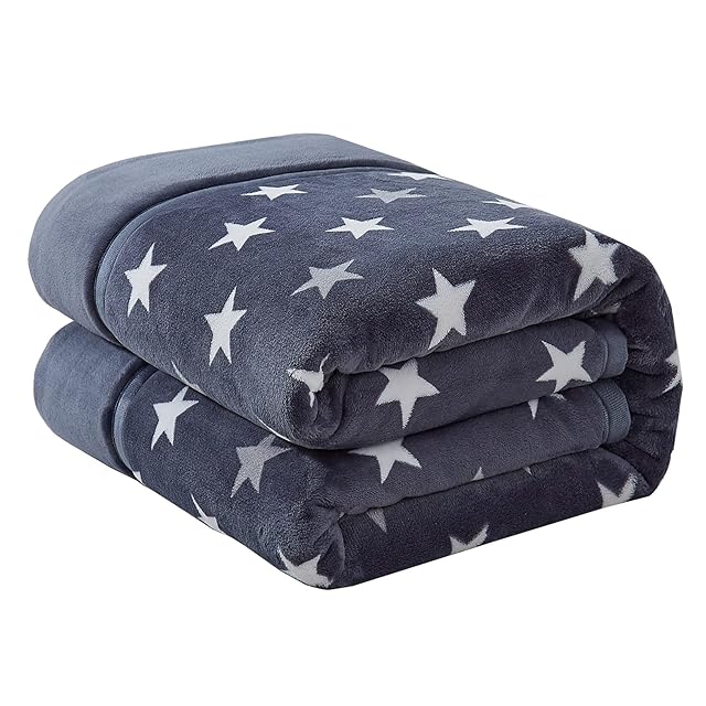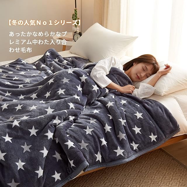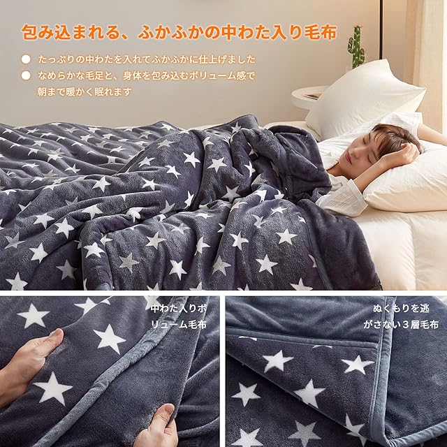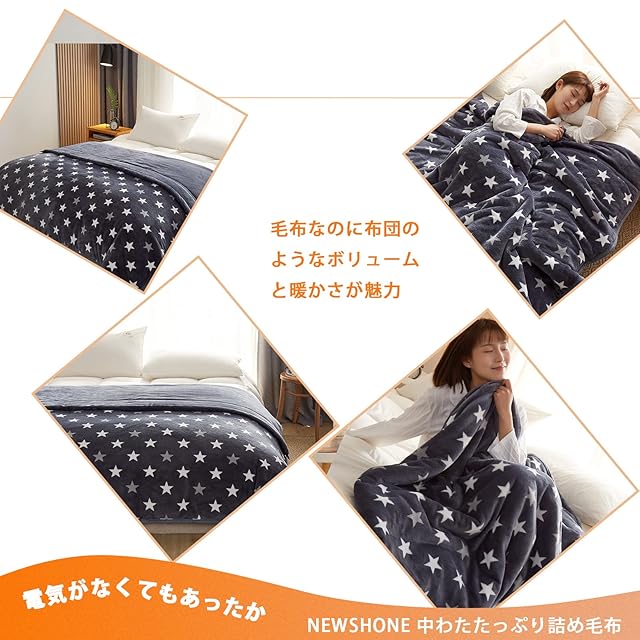 NEWSHONE 毛布 シングル 厚手 二枚合わせ あったか なめらかな ふわふわ 中わた入り 襟付き 軽い もうふ 1.9kg 冬用 マイクロファイバー 吸湿発熱 洗える おしゃれ 星柄