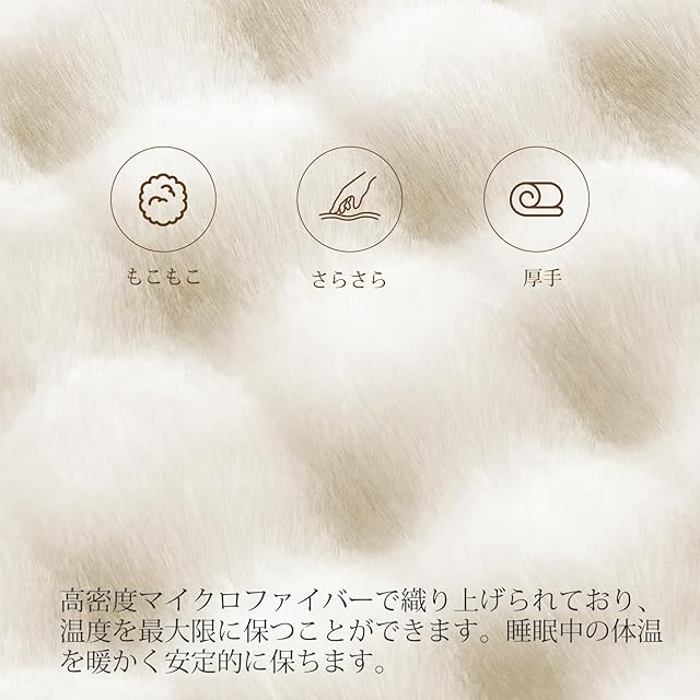 【毛布仕様】上層:ラビット調ファー 下層:ミンクファー調ファー サイズ:100*160cm カラー:アイボリー 重さ:1.78kg 洗濯機で洗えるブランケット仕様。
